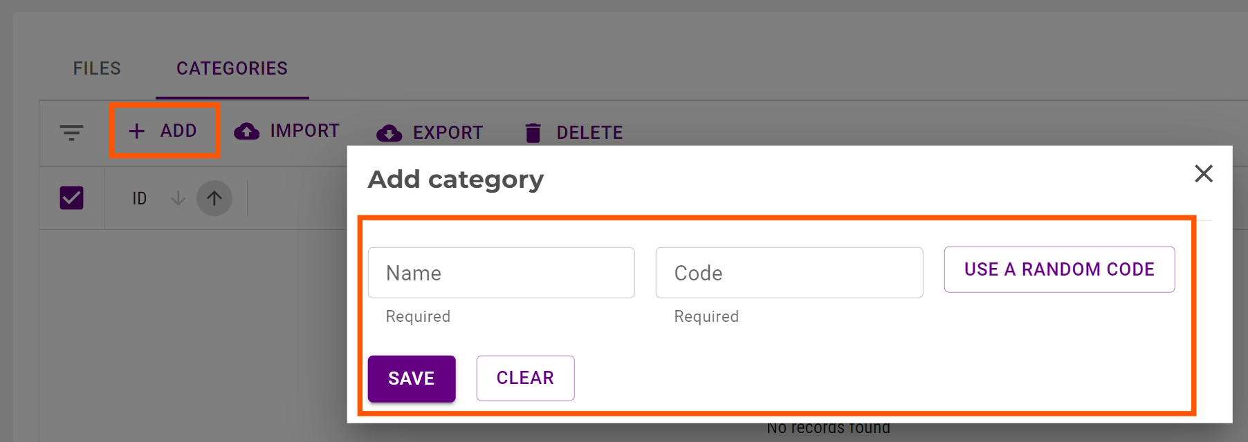 Select the tab Categories, click on “ADD”, fill in all the requested information, and SAVE: