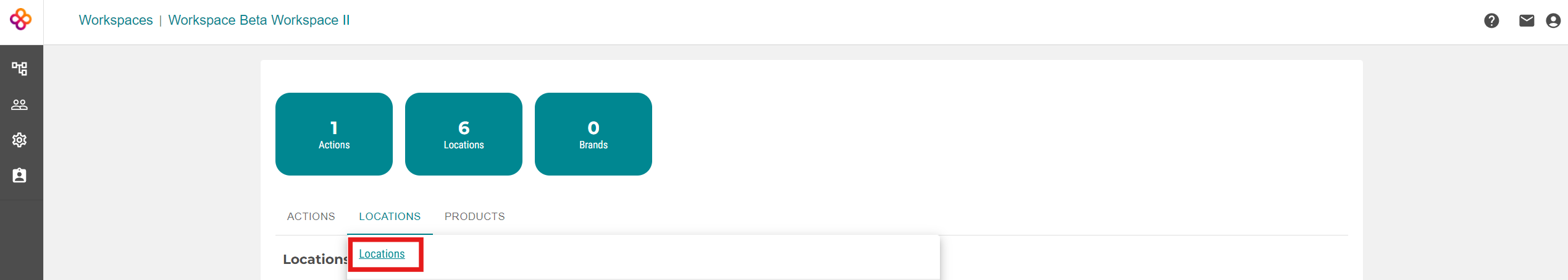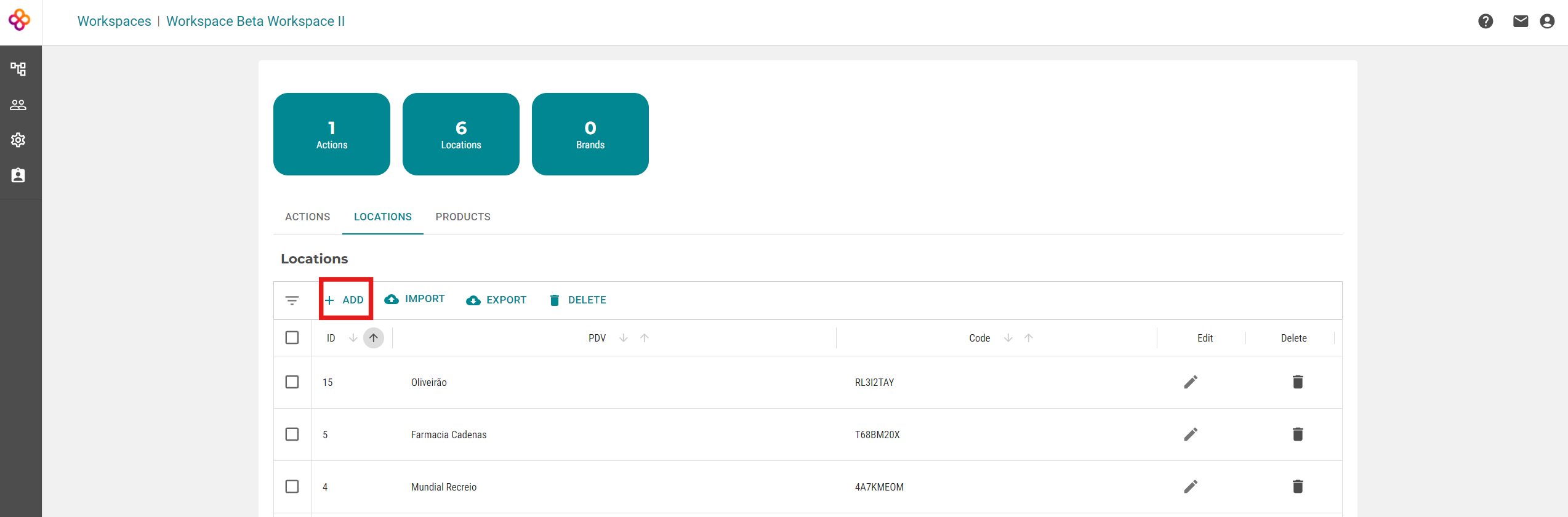 Inputting locations is done in each workspace and is used only in the workspace where it is registered. Therefore, select the workspace of your interest, and then click on the LOCATIONS tab. On this small screen, click again on LOCATIONS, and then on ADD.